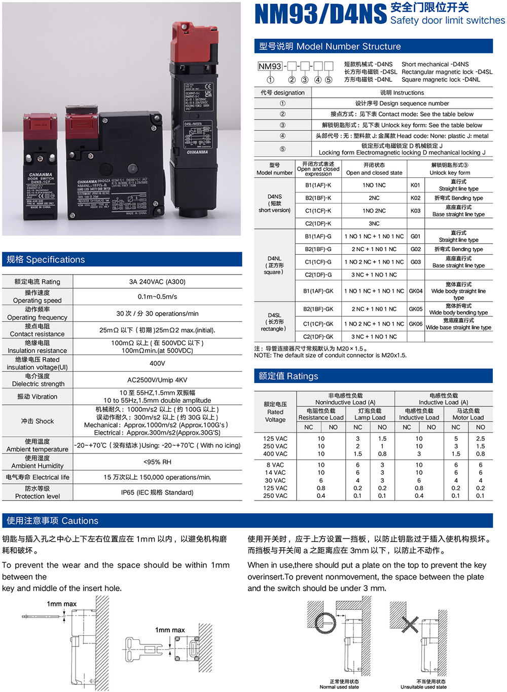 NM93/D4NS安全門(mén)限位開(kāi)關(guān)